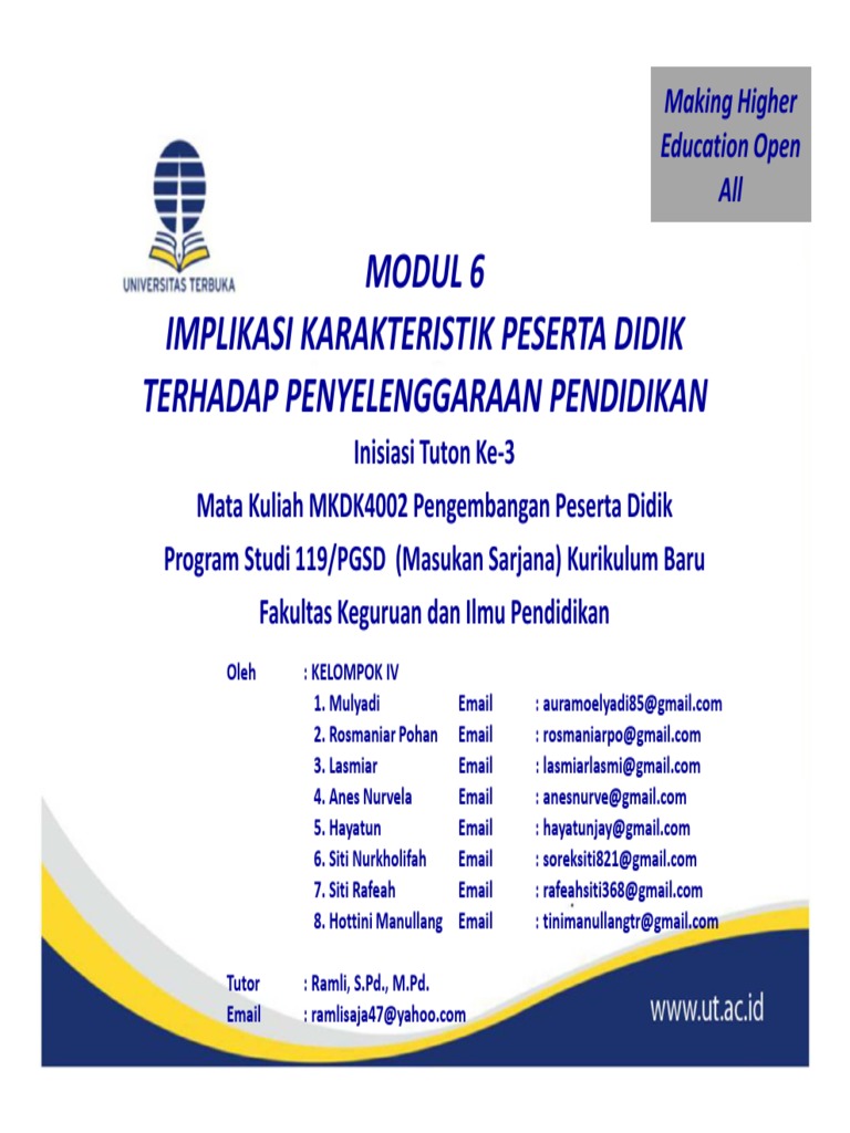 Presentasi Modul 6 Mkdk4002 Perkembangan Peserta Didik Pdf