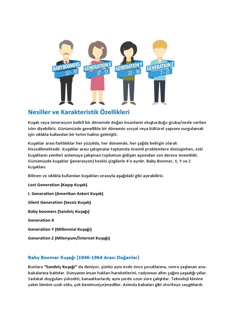 Son yıllarda adını sıkça duyduğumuz kavramlar var. Bölüm Y ve Z Kuşak İnsanının Karakteristik Özellikleri Y Kuşağı İnsanı 19801996 yılları arası doğan insanları kapsamaktadır ve şu anki nüfusun yaklaşık 16sını oluşturmaktadır. Y kuşağı Y jenerasyonu veya sadece Millenniallar olarak da bilinen X kuşağını takip eden ve Z kuşağından önce gelen bir gruptur.