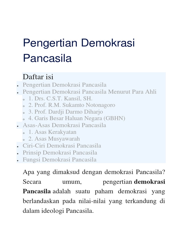 Itulah penjelasan ringkas mengenai pengertian demokrasi Pancasila asas-asas ciri-ciri pringsip dan fungsinya secara umum. Karakteristik utama yang menggambarkan demokrasi Pancasila terdapat dalam Pancasila sila ke.